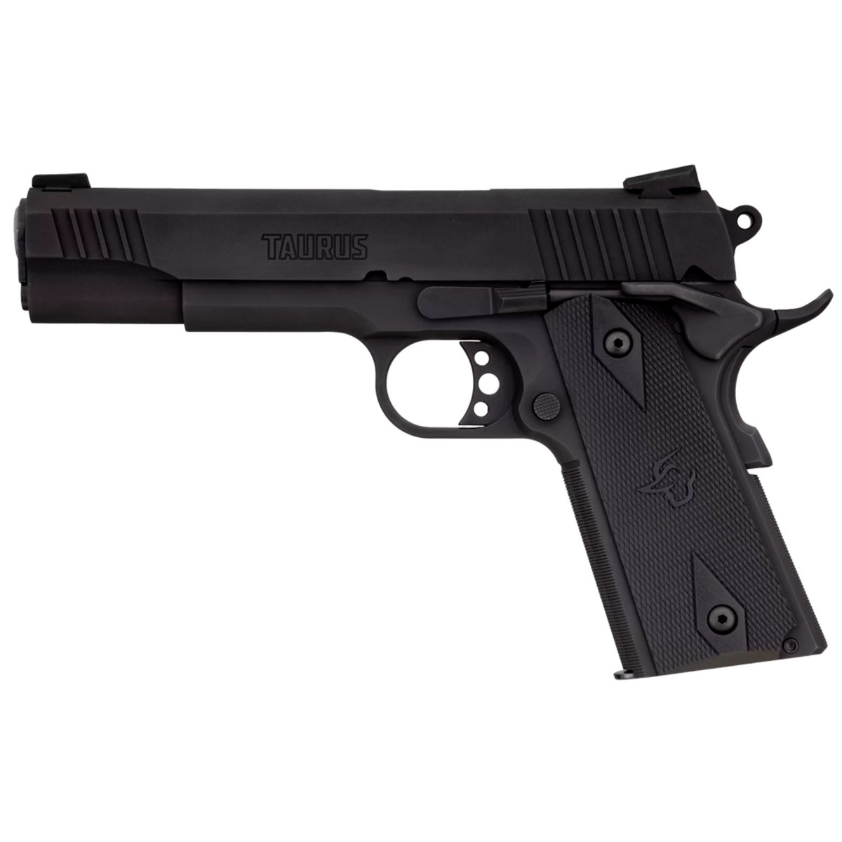 A PISTOLA TAURUS 1911 possui calibre 9mm, capacidade de 9 + 1 tiros, cano de 5’’, mecanismo de disparo de ação simples, com mira frontal e traseira Novak Style 3 pontos brancos, além de fazer parte da reconhecida linha de pistolas Taurus 1911.
