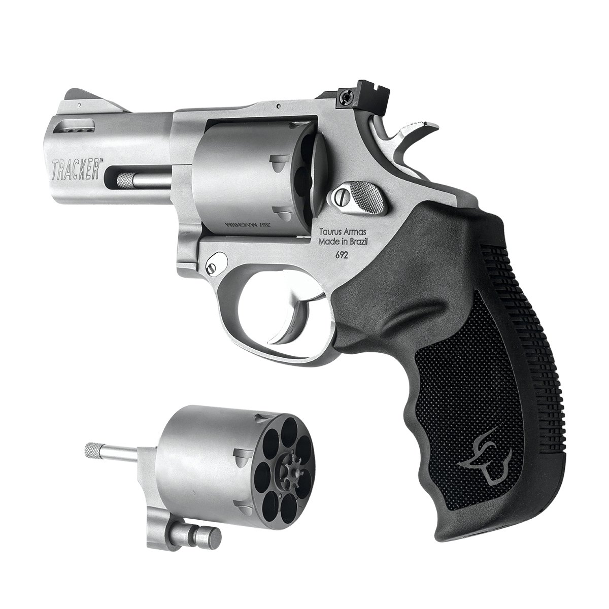 Sucesso de vendas nos Estados Unidos, agora o REVÓLVER TAURUS 692 está disponível para venda no Brasil. O Tracker 692 é um revólver multicalibre de dupla ação que oferece mais versatilidade devido a seu sistema de cilindro (tambor) duplo, dando a opção de utilizar dois calibres diferentes em uma única arma, comportando os calibres: 357MAG e 9mm. Possui acabamento em aço inoxidável fosco, cano de 3″ e capacidade de sete tiros, sendo ideal para transporte velado e/ou defesa doméstica. É um revólver de tamanho médio, pesando 1000g, com comprimento total de 207mm, altura de 144mm e largura de apenas 38mm. A mira frontal é fixa, e a mira traseira é ajustável, tanto na lateralidade quanto na elevação. Vem equipada com cabo ergonômico de boa empunhadura que ajuda a absorver o recuo no momento dos disparos.